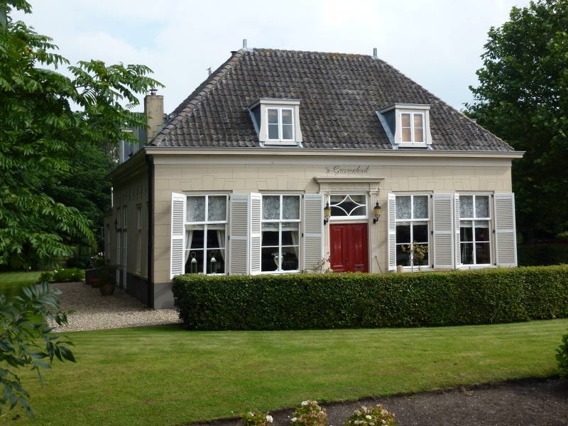 Gepleisterd huis zonder verdieping, met pannen schilddak. Woonhuis eerste helft 19e eeuw. 's-Gravenbroekseweg 1